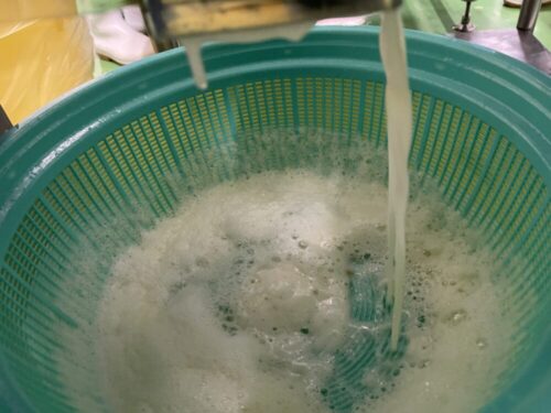 機械に投入して果汁を搾ります😊